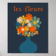 Poster Les Fleurs Retro Flowers en Vase Blue Orange