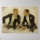 Une oeuvre exquise de J. C. Leyendecker de deux messieurs vêtus de tuxedos assis dans une conversation profonde.