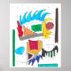 L'oeuvre est une composition abstraite colorée avec une variété de formes géométriques et organiques. Les éléments les plus importants comprennent une forme en forme d'onde bleue audacieuse en haut, un coucher de soleil jaune avec un cercle rouge pointillé, un mélange de rectangles et de formes déchiquetées dans les tons rouge, orange et vert. les formes diverses sont interconnectées avec des lignes noires fortes et placées contre un arrière - plan en forme de grille, créant une expérience visuelle dynamique et dynamique.