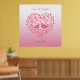 Des oiseaux roses mignons en amour dans une couronne de feuilles en forme de coeur sur arrière - plan à gradient rose et blanc