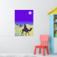 Une jolie illustration festive des trois hommes sages à dos de chameaux à travers la nature aride et les dunes de sable en chemin pour adorer l'enfant Christ. Image disponible sur divers cadeaux et produits.