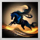 Ce design moderne présente un étalon noir galopant dans un désert.