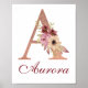 Poster Lettre A Floral Rose Gold Monogram Nursery