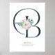 Poster Lettre B Monogramme Fleurs Blanches et Feuillage