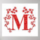 Poster Lettre monogramme M Feuilles rouges