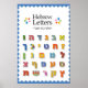 Ce grand poster sera merveilleux sur le mur de la salle des enfants ou dans une salle de classe ! Le texte en haut se lit en hébreu Letters en anglais et Ha'alef Beit Ha'ivri en hébreu. Le corps de l'affiche présente tout l'alphabet hébreu avec des motifs colorés et joyeux.