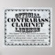 Licence officielle de Clarinet de Contrabass. Il y a de nombreuses activités impliquant divers équipements, comme l'utilisation d'une automobile, d'un avion, etc., qui nécessitent une formation spécialisée et des licences. Faire de la musique est quelque chose qui nécessite généralement une formation : leçons, pratique et répétitions. Ne devrait-on pas exiger des futurs musiciens qu'ils reçoivent une licence pour exploiter l'équipement, c'est-à-dire leur instrument de musique?