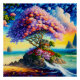 Une belle peinture numérique d'une île verdoyante au milieu de l'océan. L'île est recouverte d'arbres et de fleurs luxuriants, et l'eau est d'un bleu clair. Un petit bateau est ancré dans la baie, et quelques personnes se relaxent sur la plage. Ce tableau est parfait pour tous ceux qui veulent s'évader dans un paradis tropical.