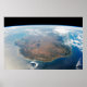 Vue de l'espace de l'île de Madagascar. L'extrémité nord de Madagascar ne se distingue pas en raison de la couverture nuageuse et de l'angle de vue très oblique.