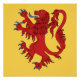 Ce dessin de Richard H. Fay présente un lion rampant, un lion rouge héraldique dépeint en profil remontant sur ses pattes arrières, prêt à déjouer tous les agresseurs. Un lion de ce type apparaît sur les bras royaux écossais.