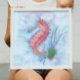 Delicate seahorse watercolor painting with vibrant colors, capturing the charm and elegance of marine life. A perfect design for ocean lovers.