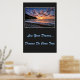 Affiche illustrée avec une photo d'un beau coucher de soleil sur la plage. L'arrière - plan de l'affiche est une couleur de charbon de bois. Customisez cet objet ou achetez tel quel. Image stock