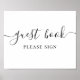 Poster Livre d'or. Mariage de script simple en noir et bl