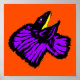 Mon illustration graphique d'un lézard frillé en néon violet et noir sur un arrière - plan de néon orange. L'arrière - plan peut être changé en couleur de votre choix.