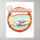 Logo de vacances d'un hydravion sur la mer, le tout dans un style vintage.