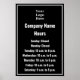 Poster Logo noir et blanc d'affaires Heures d'ouverture