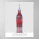 Londres Big Ben Union Jack par Fab Funky. La célèbre horloge londonienne Big Ben est habillée de rouge, blanc, bleu et gris.