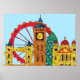 Des icônes londoniennes construisent des oeuvres d'art de style mozaïque. Fait avec l'aquarelle et le stylo.