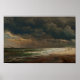 Une bande de plage de sable s'étend le long de la côte de Long Island, où de douces vagues viennent se poser sur le rivage sous un ciel brumeux. Au loin, les voiliers dérivent à l'horizon, leurs voiles saisissant la brise douce. Près du bord de l'eau, les figures marchent et se reposent, laissant des empreintes dans le sable. La plage est parsemée d'algues, de bois flotté et de rochers éparpillés. L'atmosphère y est calme, l'air salé et le rythme de l'océan.