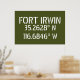 Coordonnées de la carte de latitude et longitude pour Fort Irwin - situé dans le désert près de Barstow, en Californie police blanche de style sercil sur l'arrière - plan vert de l'armée.