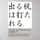 Le proverbe japonais : L'ongle qui sort se fait marteler dans L'ongle qui sort s'y met ; La meilleure politique est de garder la tête baissée et d'éviter les ennuis ; Conforme aux règles de la société.