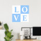 Poster en bloc bleu/blanc avec lettres d'amour. Customisez cet objet ou achetez tel quel.