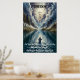 Luc 23:34 Jésus dit : Père, pardonne-leur, car ils ne savent pas ce qu'ils font. Et ils jettent beaucoup pour diviser ses vêtements. Un paysage époustouflant et éthérée. Dans le ciel, une silhouette rayonnante, peut-être une divinité ou un être céleste, est suspendue au milieu de nuages tourbillonnants, tenant une croix au-dessus d'un plan d'eau serein. En dessous, un personnage solitaire, peut-être mortel, se tient dans l'eau, tenant deux employés, face à la figure radieuse. Le paysage environnant est caractérisé par des montagnes imposantes, un lac calme reflétant le ciel et un avant-plan de terrain accidenté. Toute la scène est baignée de bleus, de violets et de teintes dorées, créant un sentiment d'émerveillement et de respect.