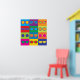 Pop-art styled illustration of popular eyeglass frame styles in a colorl checkerboard.