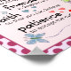 "C'est ma prière pour vous : Confort pendant les jours difficiles, sourires quand la tristesse s'infiltre, arcs-en-ciel pour suivre les nuages, rire pour embrasser vos lèvres, couchers de soleil pour réchauffer votre coeur, embrasser quand les esprits chantent, beauté pour vos yeux à voir, amitiés pour égayer votre être, foi pour que vous puissiez croire, confiance en vous, courage pour vous connaître, patience pour accepter la vérité complète, amour votre vie." Avec un arrière - plan rose / rose / violet et une bordure en pois.