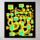 Un réseau abstrait coloré comme structure peut-être évoquant un circuit ou une carte d'une sorte. numériquement peint en jaune et turquoise avec un décalage en rouge lui donnant un look décalé au pochoir. Le design a été en partie créé à l'aide d'effets de peinture à l'huile numérique qui lui donne un look joli peint à la main et au pochoir.
