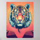 Une oeuvre d'art saisissante du visage d'un tigre qui brille de couleurs vives et d'énergie cosmique. Placés sur un dégradé éthérée de teintes orange et rose, les yeux bleus percevants du tigre rayonnent de puissance et de sagesse. Les motifs circulaires et les motifs galactiques tourbillonnants de l'arrière - plan amplifient son aura mystique, symbolisant la force, l'équilibre et la beauté indomptée de l'univers.