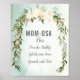 Panneau de table de bar Maman-osa pour vos invités pour la douche d'arrosage bébé. Elégant spray à fleurs de rose blanche avec arrière - plan d'aquarelle verte.
