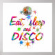 Partagez votre amour pour la discothèque avec ce design coloré avec des étoiles, une boule disco et les mots Eat, Sleep et Disco.