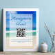 Une belle photo de vagues océaniques décore cette affiche moderne de fonds pour lune de miel de mariage de destination. Jolie écriture cursive bleue sur la photographie tropicale au bord de la mer pour votre panneau de mariage à la plage.