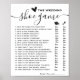 Poster du jeu de chaussures mariage | He Said She Said Elegant Fête des mariées and Reception Game : Ajoutez des rires et des souvenirs inoubliables à votre célébration avec notre Poster de Jeu de Chaussure Mariage | Il a dit qu'elle a dit Élégant jeu de Fête des mariées et de réception — une façon amusante et interactive de divertir les invités et de célébrer la mariée et le marié. Conçu avec un agencement épuré et minimaliste et disponible avec d'élégants accents d'aquarelle fleurie ou bleu poussiéreux, ce poster est un must du design pour tout événement mariage moderne. Parfait pour les réceptions de mariage, les douches nuptiales, les soirées bachelorette et les douches en couple, ce jeu de chaussures invitation les invités à deviner qui a dit quoi, offrant des moments hilarants et de douces surprises. Avec sa typographie noir et blanc et ses thèmes fleur sauvage ou champagne en option, ce jeu s'intègre parfaitement dans un décor minimaliste, classique, rustique ou floral mariage. Customisez l’affiche avec les noms du couple, la date de l’événement ou un titre personnalisé tel que "The Shoe Game", "He Said She Said Said" ou "Bride or Groom". C’est l’élément central idéal pour un brunch, un dîner de wedding shower ou de répétition, qui encourage la participation des invités et crée des souvenirs durables. Le jeu de chaussures Mariage est un moyen facile d'apporter des sourires et de l'énergie à votre célébration. Combinez-le avec des questions sur le marié, des jeux de devinettes sur la mariée et le marié, ou même un jeu de questions et réponses pour garder les invités engagés et riant. Affichez cette affiche élégante de jeu de mariage à votre événement pour un brise-glace amusant qui réunit tout le monde et célèbre le lien unique du couple d'une manière ludique et inoubliable. 🖤 Cliquez sur Personnaliser Maintenant pour créer votre poster de jeu de chaussures personnalisées et laisser le plaisir commencer à votre fête mariage ou douche nuptiale. Poster de jeu de chaussures mariage imprimable, il dit qu'elle a dit jeu, élégant signe de jeu de douche nuptiale, signe de mariage de jeu de chaussures moderne, couple minimaliste jeu de devis, signe de jeu de chaussures de brunch nuptiale florale mariage de jeu, jeu de mariage noir et blanc, jeu de douche à thème de champagne signe de la fiancée et du marié