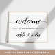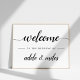 Bienvenue dans votre mariage avec notre affiche simple et élégante d'accueil de mariage. 16x10 signe caractéristiques "bienvenue au mariage de [noms]" en script de calligraphie noire croustillant et en lettres de bloc classiques.