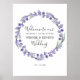 Panneau mariage de couronnes pourpres. Offrez un accueil chaleureux à vos invités mariages avec ce magnifique panneau d'accueil à la lavande de style champêtre. Il présente des lavandes texturées à l'aquarelle dans une belle couronne. La couleur de l'arrière - plan est blanche, mais vous pouvez choisir une couleur de remplissage de votre choix.