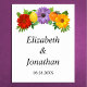 Collection mariage avec un design floral rouge vif, jaune doré et violet clair accentué d'agrumes oranges et citrons et de verdure botanique