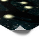 Jolie scène extérieure de ciel de minuit plein d'étoiles et de constellations dans une atmosphère céleste, grand mariage assorti pour un mariage d'été extérieur. Silhouette d'un arbre avec lanternes et ampoules pendantes le long de l'arbre. Très vintage et rustique. Copyright de conception © CustomInvitesOnline.com
