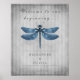Poster Mariage de libellules à bijoux bleu Bienvenue