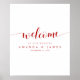 Nous avons donné à ce simple et animé modèle d'affiche d'accueil mariage une brassée de panache avec "Welcome" dans une police moderne fluide. Nous aimons les fleurs stylisées et allongées aux deux extrémités du mot. Nous avons choisi un rouge vif pour ceci et l'autre texte. Parcourez notre collection d'affiches de bienvenue mariage où vous verrez différentes versions en couleur de ce design que nous avons fait pour vous de personnaliser.