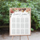 Le tableau de sièges invités mariage présente vos noms dans des lettres de script de calligraphie élégantes, avec votre date de mariage et les assignations de tables d'hôtes en dessous. Espace prévu pour 12 tables maximum. Conçu pour associer notre collection Rustic Bloom mariage et événement, avec des fleurs d'aquarelle et du feuillage dans les tons de terre d'automne muet.