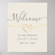 Elégant, moderne, minimaliste neutre champagne or mariage bienvenue affiche avec faux coeur de corde et simple écriture calligraphie manuscrite.