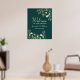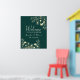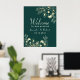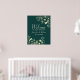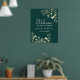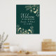 Bienvenue à vos invités dans le style avec notre affiche d'accueil bohème et élégante mariage vert émeraude. Mélange moderne de sophistication chic et d'une atmosphère bohème vintage, ornée de fleurs dorées d'or et d'un script de calligraphie délicat. Cette affiche donne le ton d'une célébration mémorable, promettant une atmosphère de grâce et de charme luxueux dès leur arrivée.