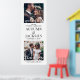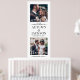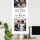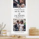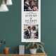Bienvenue invités mariages à votre cérémonie ou réception avec une élégante photo personnalisée grand poster vertical. Les images et le libellé de ce modèle de signalisation téléchargeable sont simples à personnaliser (CONSEIL EN MATIÈRE DE PLACEMENT DE L'IMAGE : Une façon simple de positionner une photo exactement comment vous voulez est de la rogner avant de télécharger sur le site Zazzle.) Le design moderne minimaliste noir et blanc comprend deux images de votre choix, une calligraphie de script de style manuscrit chic, une typographie vintage élégante, et des messages personnalisables qui lisent "bienvenue à notre célébration mariage" et "merci de partager notre joie". Cette affiche imprimable est une façon élégante de partager des images fiançailles tout en ajoutant une touche personnalisée à vos décorations spéciales du jour. Félicitations à la mariée et au marié !