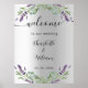 Un arrière - plan faux argenté. Décoré de fleurs de lavande, de fleurs et de verdure d'eucalyptus. Lettres violettes et noires. Personnalisez et ajoutez vos noms et la date du mariage.