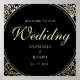 poster de mariage vintage, élégant, noir et chic avec cadre fleuri art déco doré et script de calligraphie moderne.