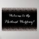 Cet éblouissant poster de mariage ou d'événement spécial saura séduire vos invités. Il présente des orbes lumineuses brillantes argentées qui s'estompent vers un arrière - plan noir subtil. Parfait pour une mariage élégante et classe. Entièrement personnalisable avec votre texte.