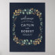 Symbole d'accueil de mariage vintage bleu marine, vert et or