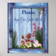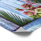 Design artistique en bois vintage bleu texturé avec décor de fleurs graphiques rose pour un invité ou un chalet de plage pour tenir un mariage. Cette collection est accompagnée d'un livre d'or pour les clients mariages ou les visiteurs de vacances à signer